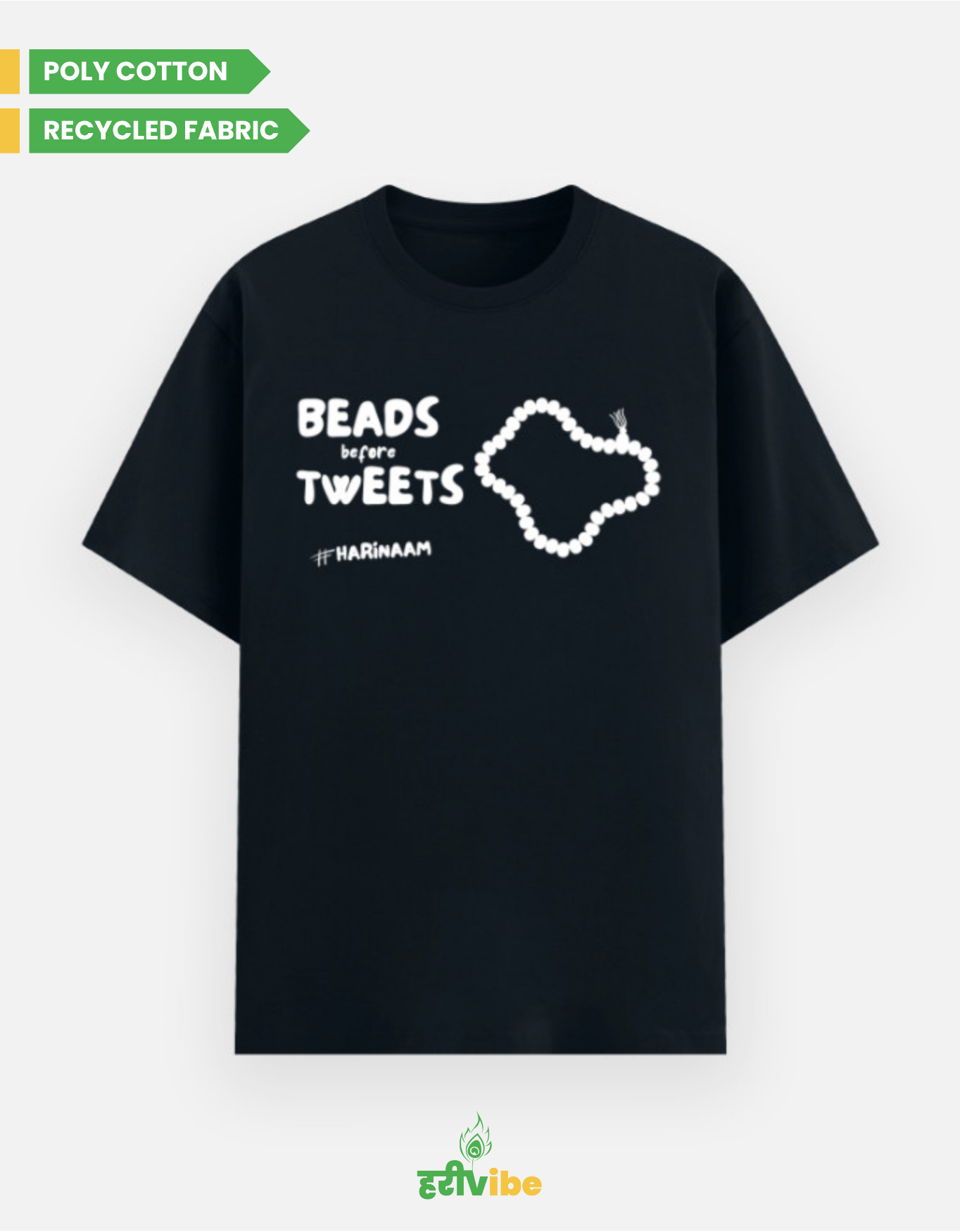 Inspired by the practice of starting your day with Harinaam — aligning the mind before feeding the feed. In an age of noise, mantra is clarity. This tee reminds you what actually deserves your first attention.